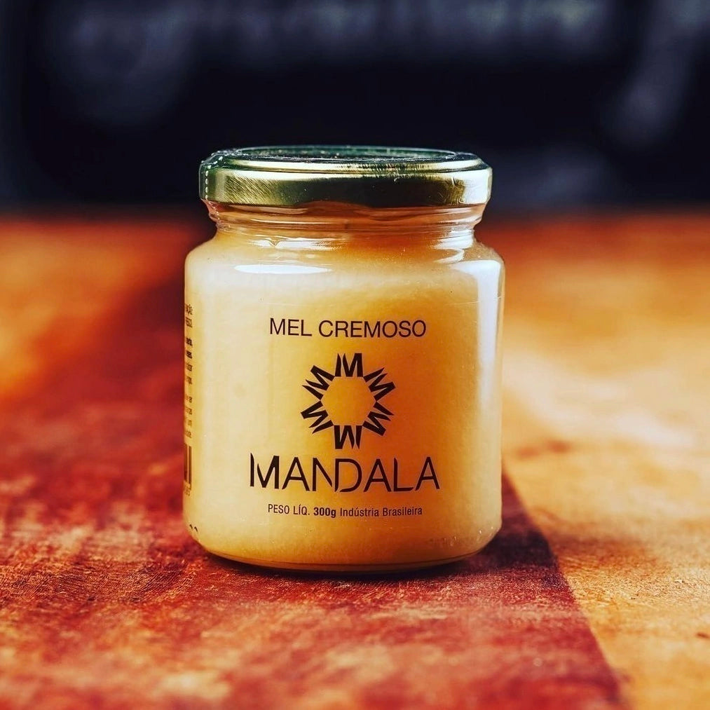 Mel Cremoso Mandala: uma verdadeira raridade, este mel se destaca por sua textura cremosa e suave, resultado de um cuidadoso tratamento térmico que impede a cristalização e confere a ele uma consistência semelhante à geleia.