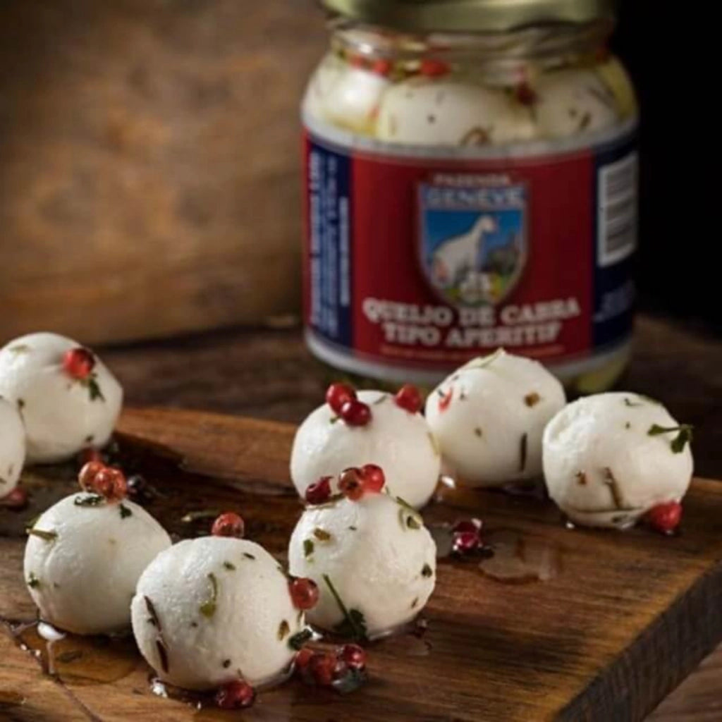 O Boursin Aperitif da Fazenda Geneve são bolinhas de Boursin extra cremoso banhadas em um blend de azeite gourmet extra virgem com ervas finas e pimenta rosa.