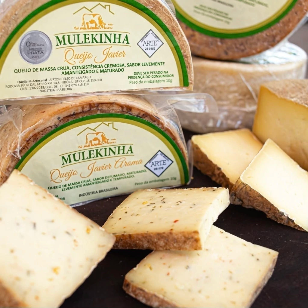 O Javier Aroma é a versão especial do tradicional queijo Javier, produzido artesanalmente pela Cabanha Mulekinha em Ibiúna/SP. Feito com massa crua de leite de vaca, leva um delicado toque de ervas finas e uma finalização em leve defumação, resultando em um queijo equilibrado, perfumado e cheio de personalidade.