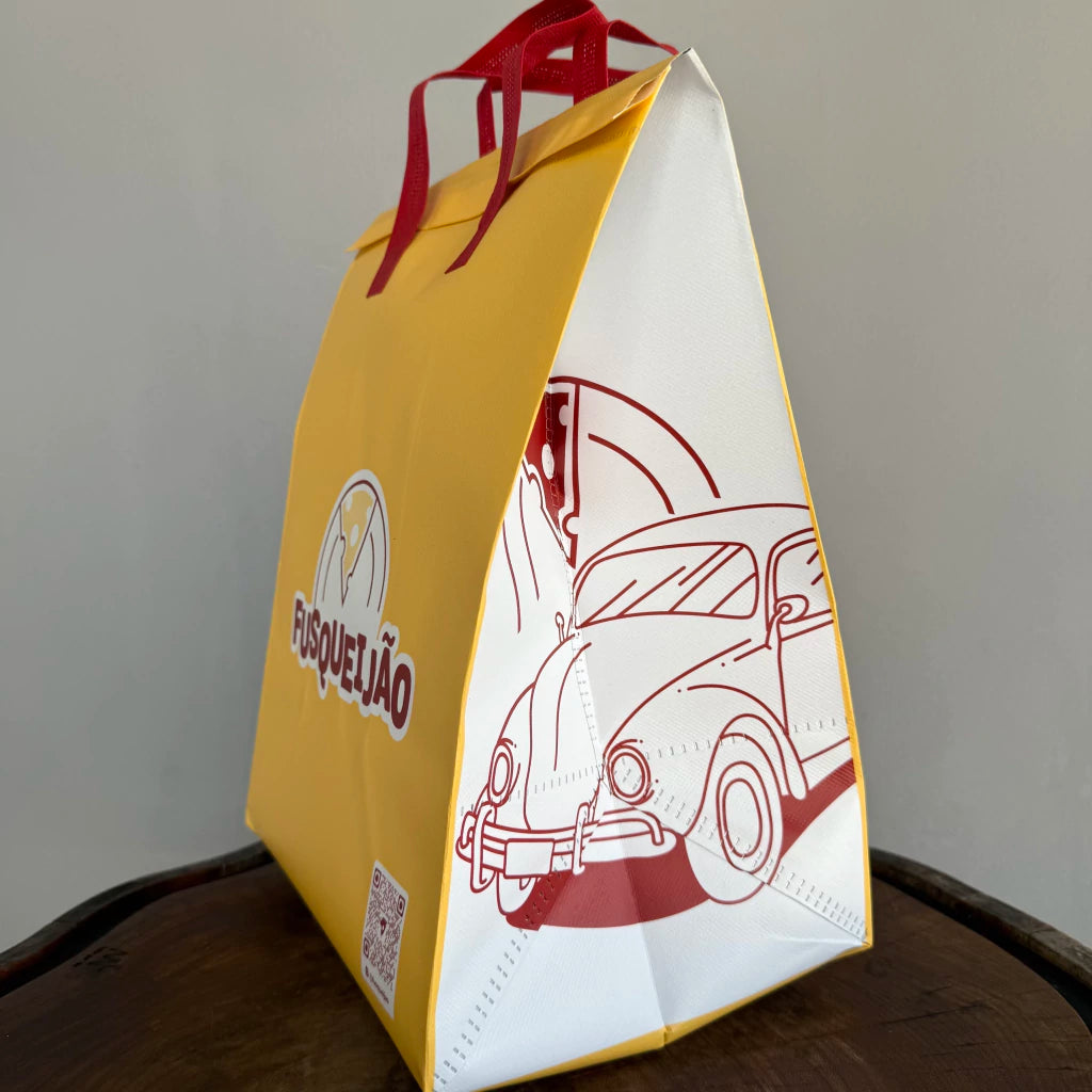 💡 Dica: reutilize sua sacola térmica — ela é durável, fácil de limpar e mantém o espírito do Fusqueijão acompanhando você em cada momento especial.